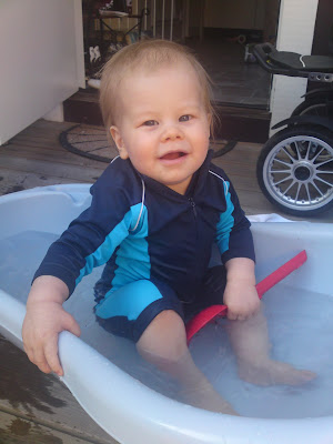 Träffade på Theo i badbaljan på gården också. =)